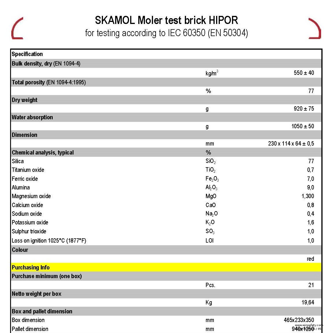 歐標(biāo) EN 50304 實(shí)驗(yàn)用高溫耐火磚